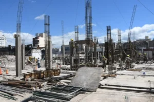 Los trabajos presentan un 30% de avance. Se trata de la estructura resistente, que incluye columnas, vigas y armados de...