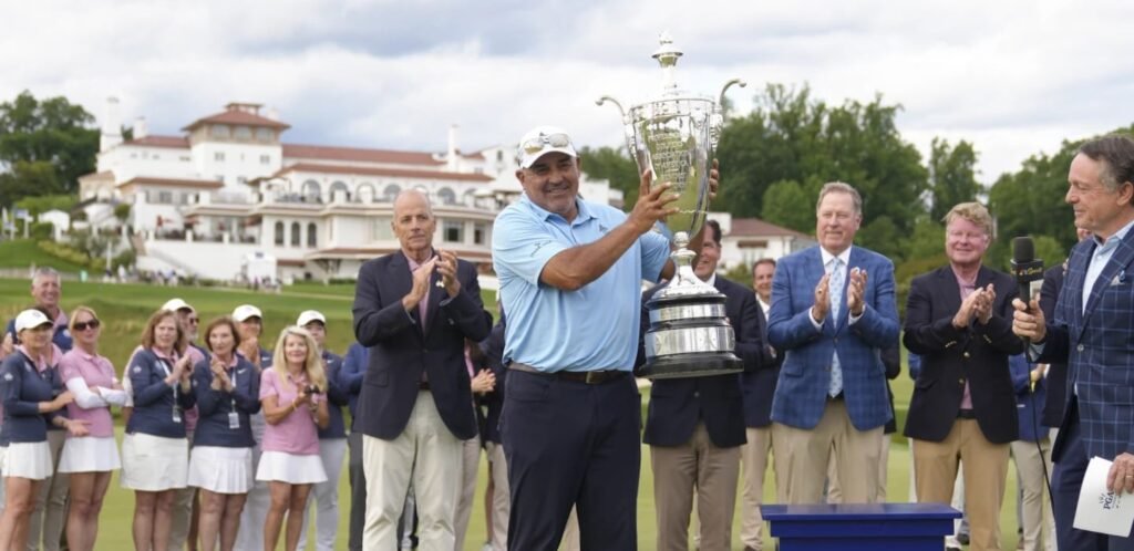 En un año espectacular, Ángel Cabrera consiguió otra hazaña en el marco del golf mundial, al ganar el Senior PGA Championship, en el campo del Congressional Country Club. “El Pato” suma cuatro Major en su carrera a lo largo de todos los tiempos: el US Open en 2007, el Masters en 2009, de la gira regular. El Regions Tradition logrado el lunes pasado y este, con un total de 280 golpes (-8).