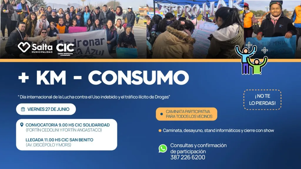 Será el viernes 27 de 10 a 12. El punto de partida será el CIC de Solidaridad, se pasará por el CIC Gauchito Gil y el Parque de la Familia hasta llegar al CIC de San Benito. El objetivo es informar a la sociedad y ayudar a la persona que atraviesa esta problemática.