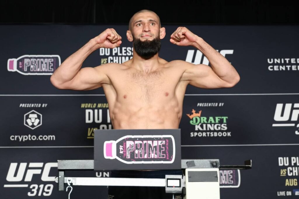 Luego de una pausa de casi un año, la estrella del UFC Khamzat Chimaev regresará al octágono este domingo no antes de las 00.30 para medirse con Dricus du Plessis, el actual campeón de peso medio (185 libras) de la mayor compañía del mundo de las MMA. La pelea, a cinco asaltos, se podrá ver a través de Disney+ y tendrá como sede el United Center (Chicago, Estados Unidos).