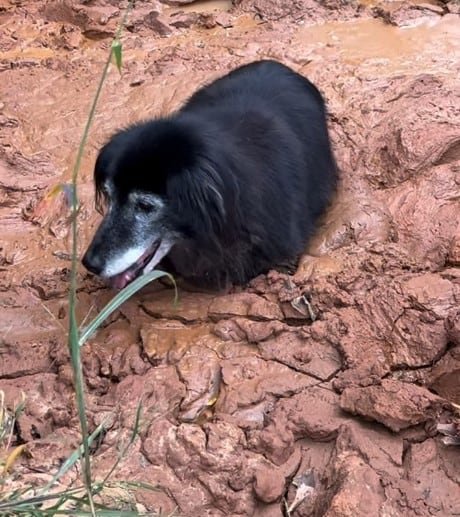 El pobre animal estaba exhausto tras horas de intentar escapar del pozo, pateando desesperadamente sin moverse ni un centímetro. Por suerte, su madre lo encontró justo a tiempo. Kristin intentó sacar a Whitey, pero fue en vano; por suerte, Jay estaba justo detrás de ella, logró sacar al perro y ponerlo seguro en tierra firme.