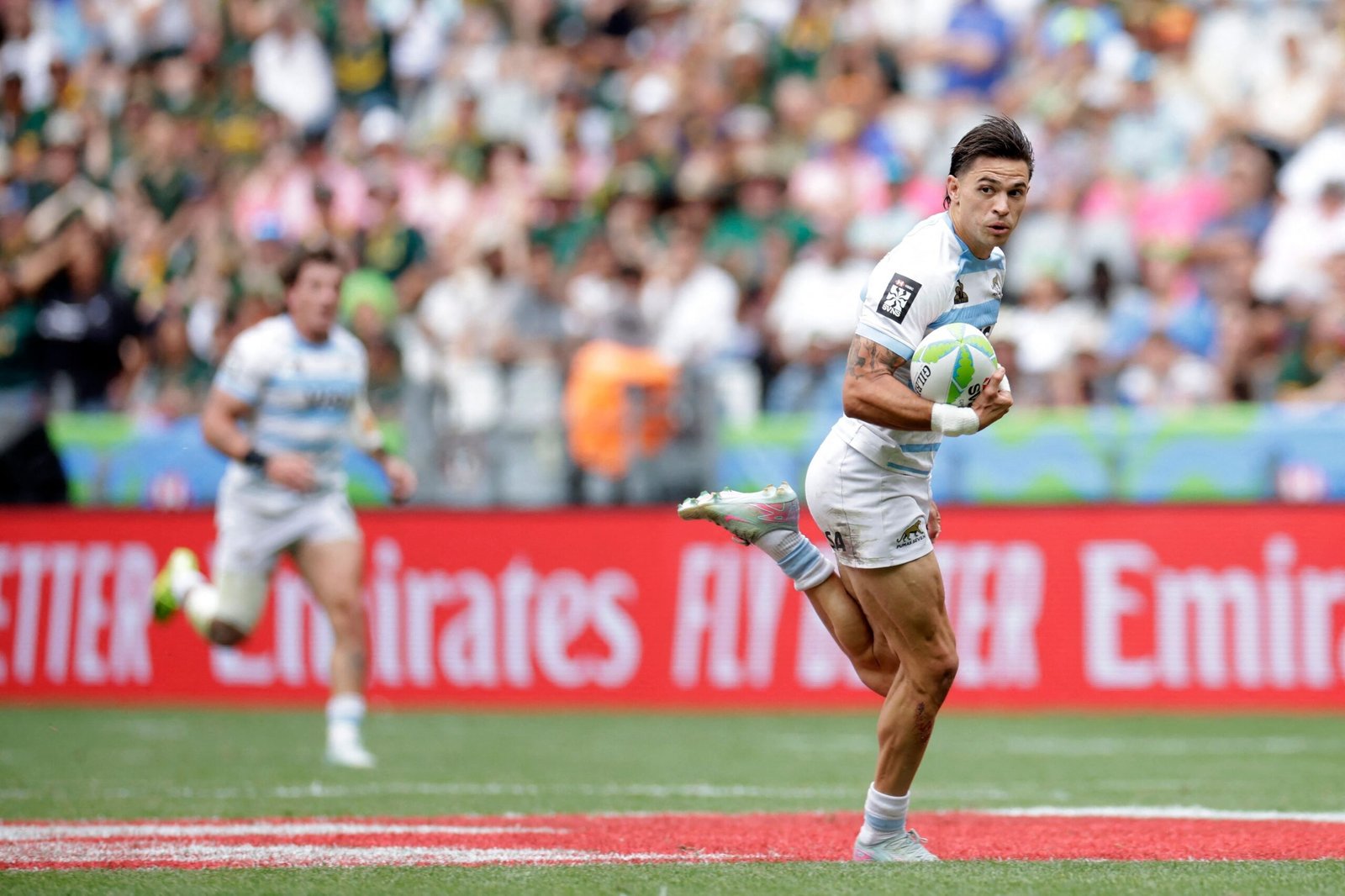 Cuando Moneta, de 25 años, recibió la pelota y comenzó a acelerar, parecía que había varios sudafricanos para interrumpir su carrera, sin embargo, a pura velocidad y creatividad, fue esquivando obstáculos y siguió avanzando hasta apoyar la pelota en el in-goal. Una acción espectacular que quedará en la memoria de los apasionados por los Pumas 7s.
