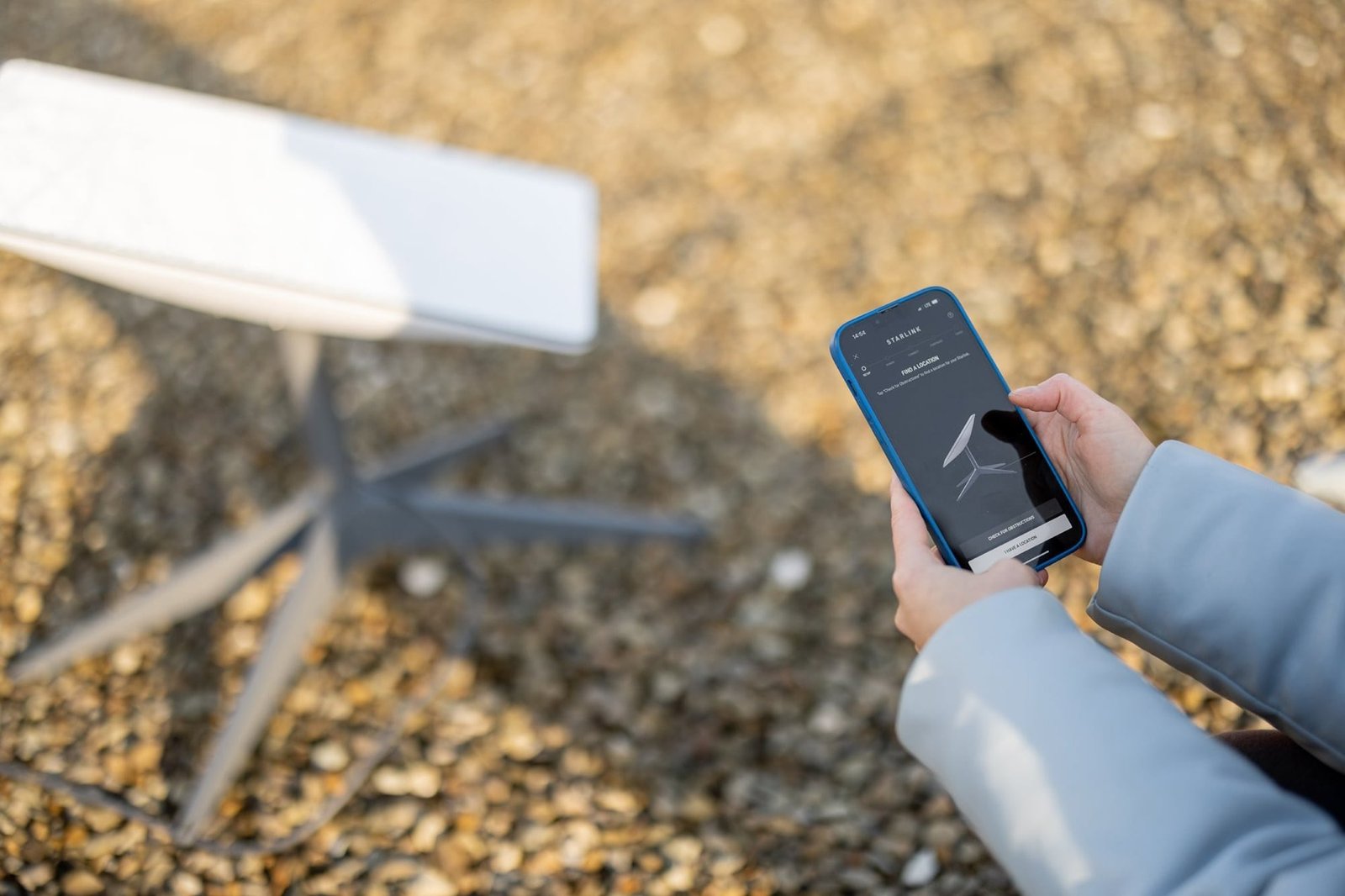 - Encender el equipo y abrir la aplicación de Starlink (iOS o Android) para configurar.